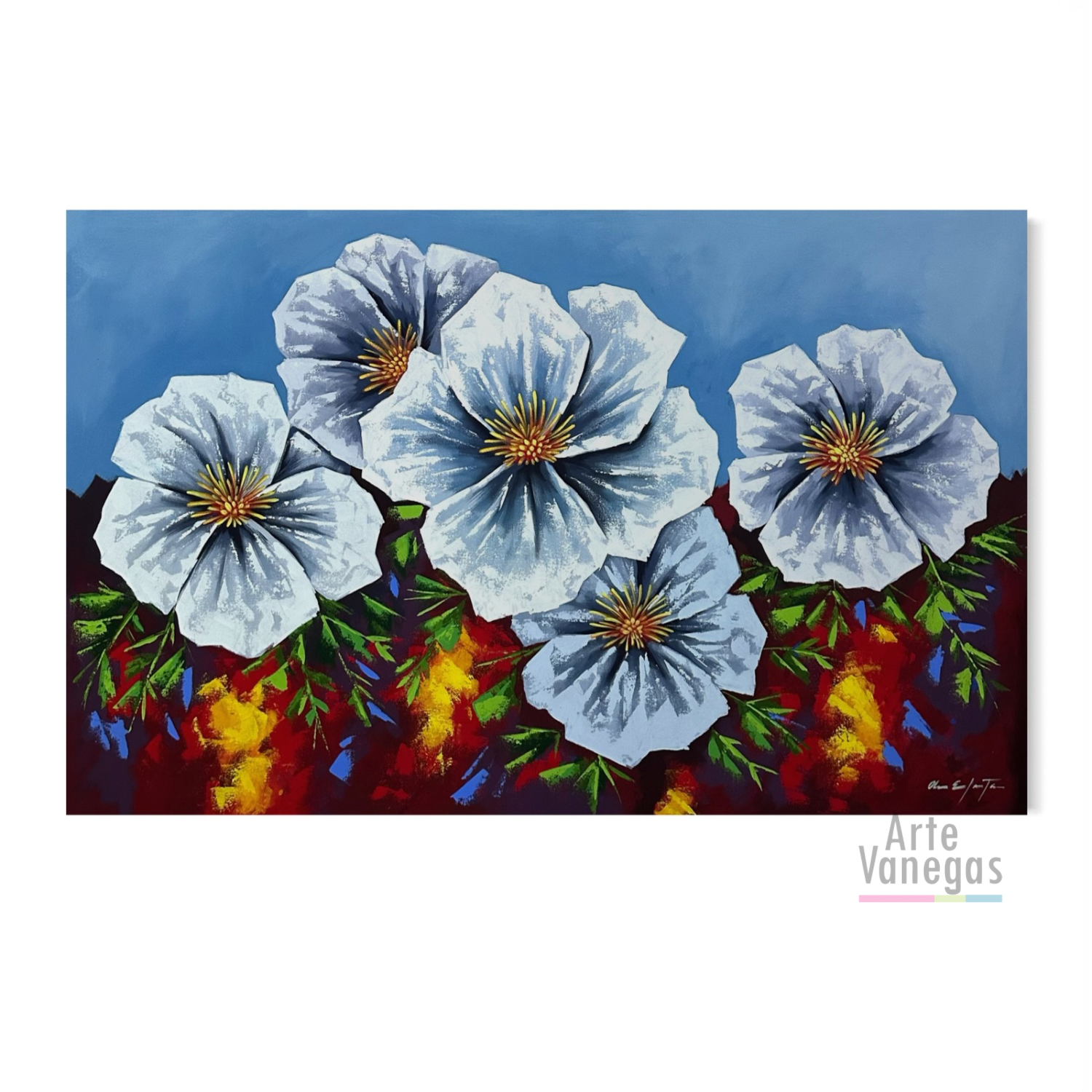 Obra Margaritas en fondo azul 94x148cm